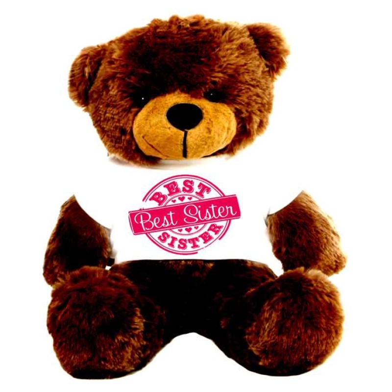 2 feet big brown teddy bear wearing special Best Sister T-shirt