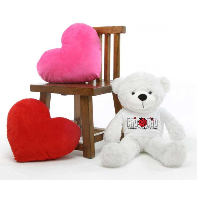 2 feet big white teddy bear wearing a Mother's Day T-shirt