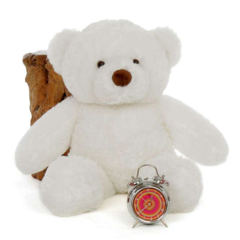 They measure 30" and is stuffed with love in India and has silky soft white fur that will set your heart a flutter!