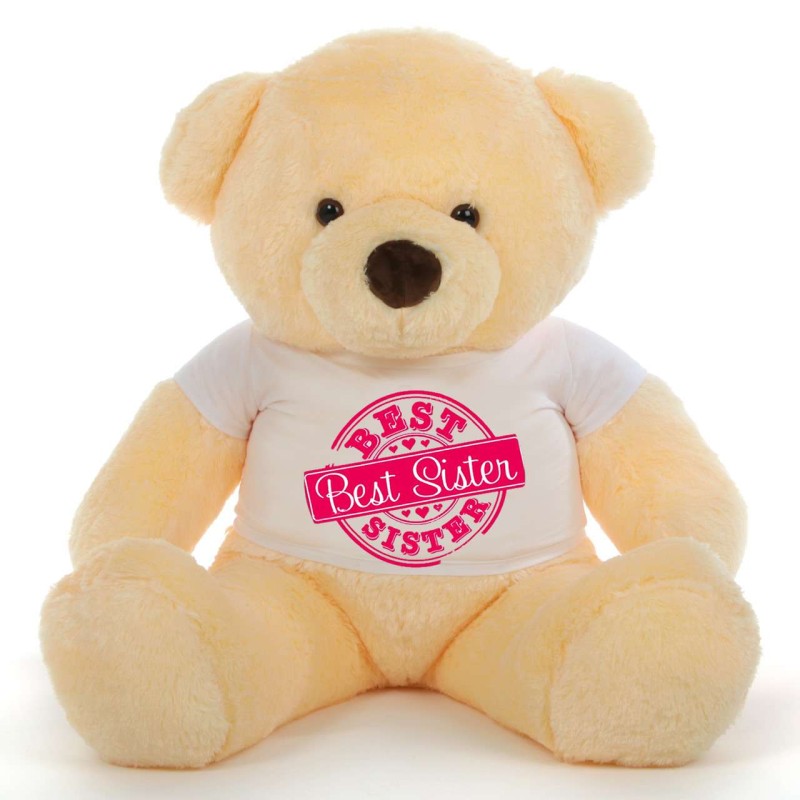 3.5 feet big peach fur face teddy bear wearing special Best Sister T-shirt