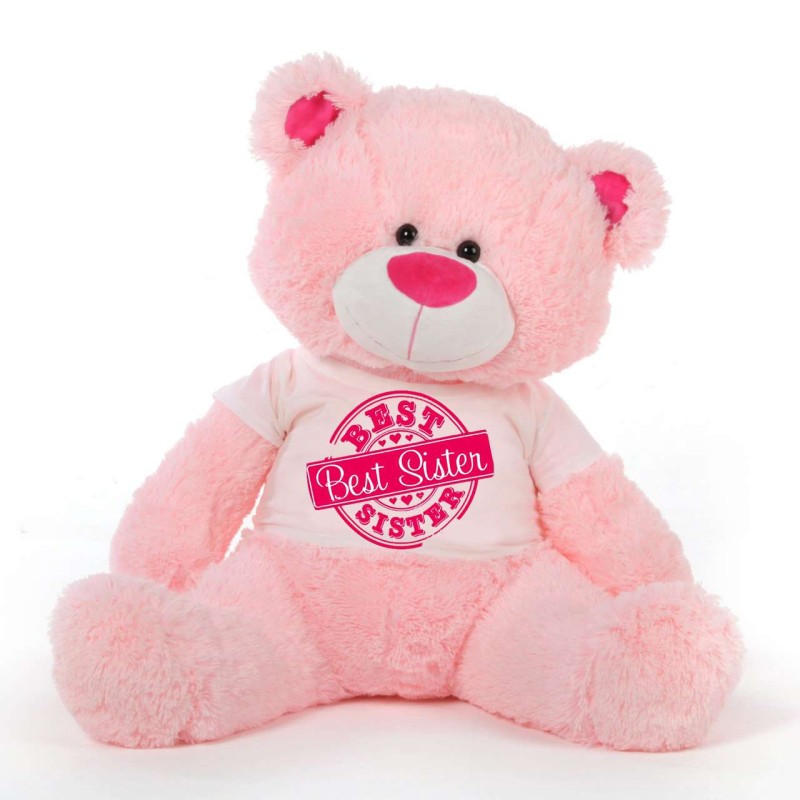 5 feet big pink gabby teddy bear wearing special Best Sister T-shirt