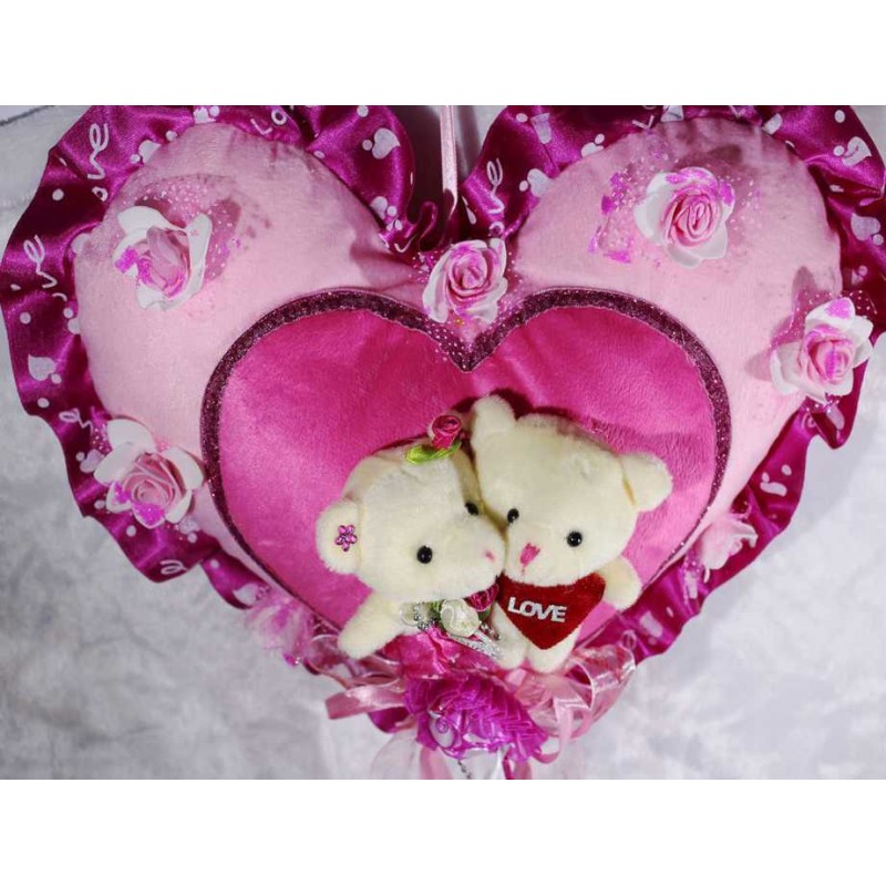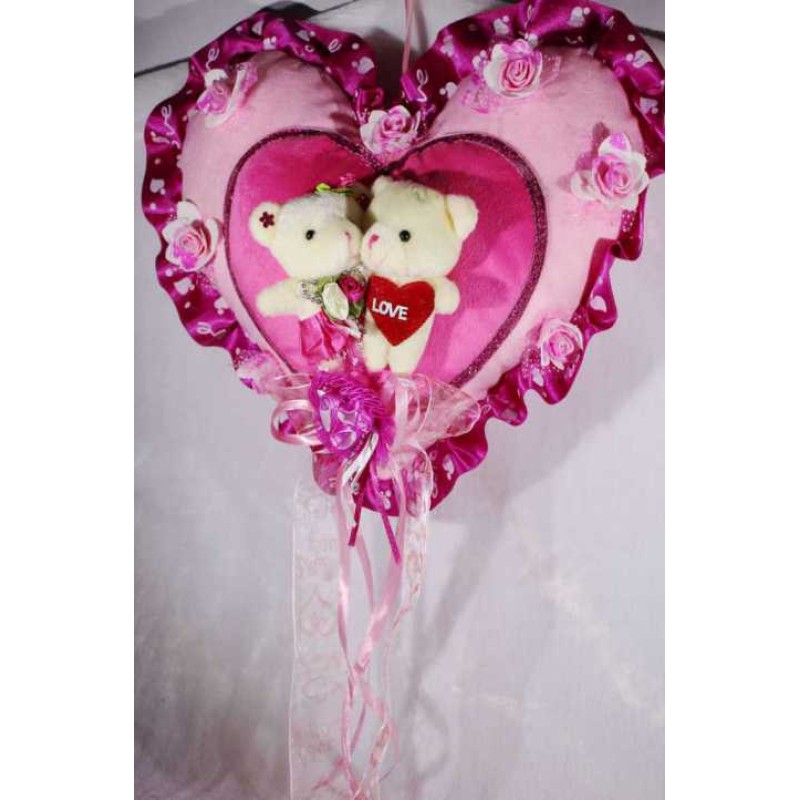 If you are looking for a special gift for someone then nothing can be a better option than this hanging heart with couple teddy bear. Soft toys are loved by the people of all age groups. This hanging heart is pink in color and is covered with beautiful pink imported roses. The heart is decorated with ribbons, frills and a cute valentine couple teddy bear is situated in the middle. You can decorate your home with this adorable hanging basket or can gift to your near and dear ones. Specially handcrafted in INDIA.