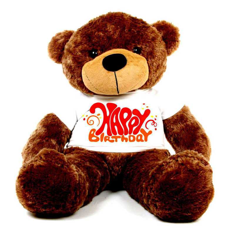 Brown 5 feet Big Teddy Bear wearing a Happy Birthday T-shirt