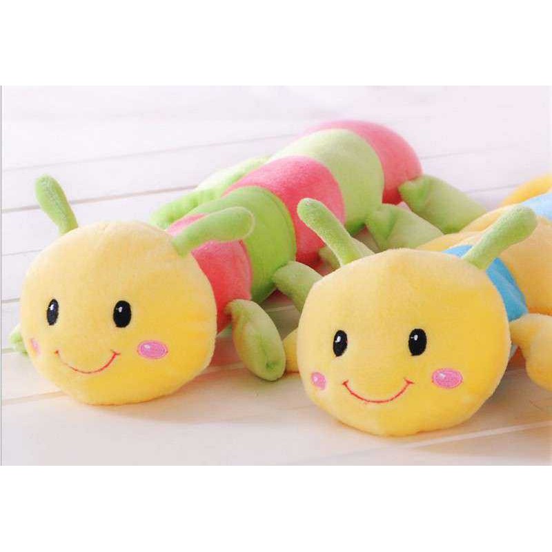 About 15 inch length. This lovely Baby Caterpillar is very cute and is available in two different colors combinations, One being Yellow and Pink, Other being Yellow and Blue.