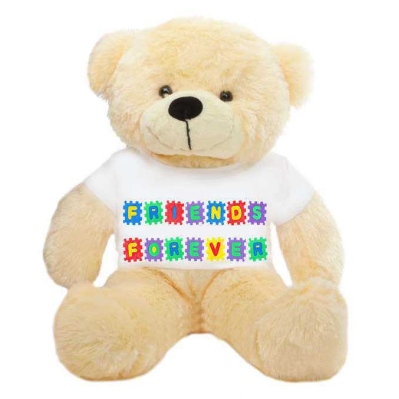 Peach 2 feet Big Teddy Bear wearing a Friends Forever T-shirt