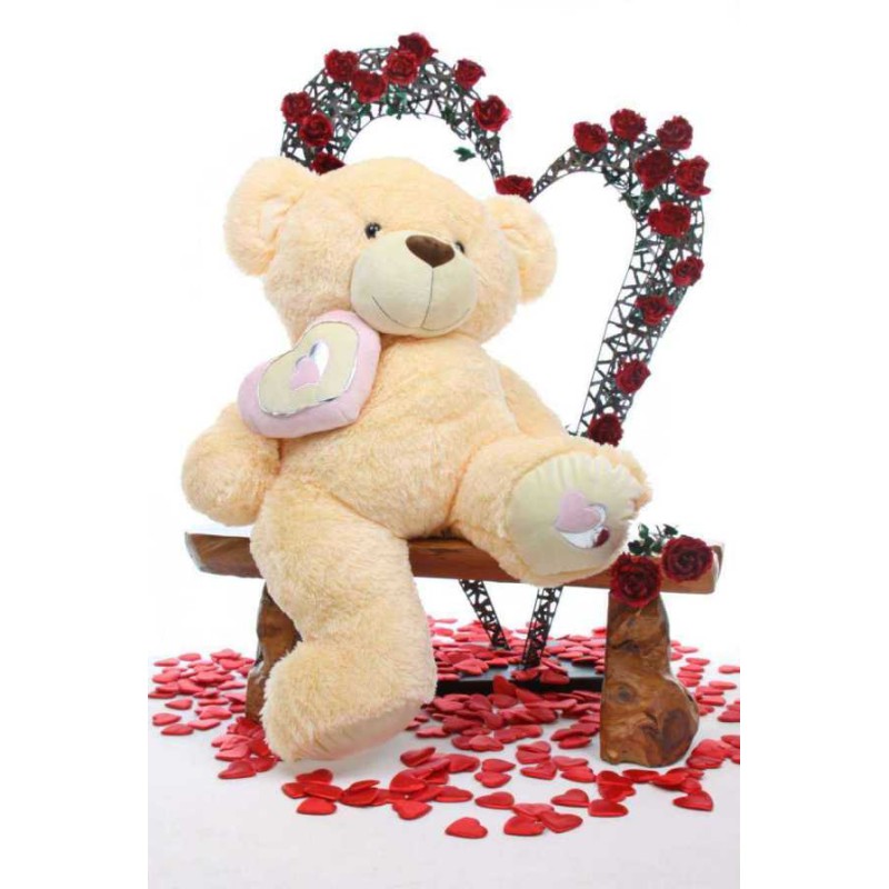 Peach 5 Feet Big Teddy Bear with a heart