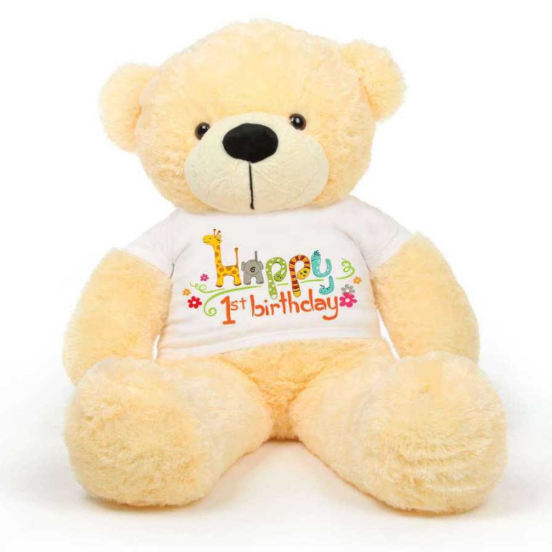 Peach 5 feet Big Teddy Bear wearing a First Happy Birthday T-shirt