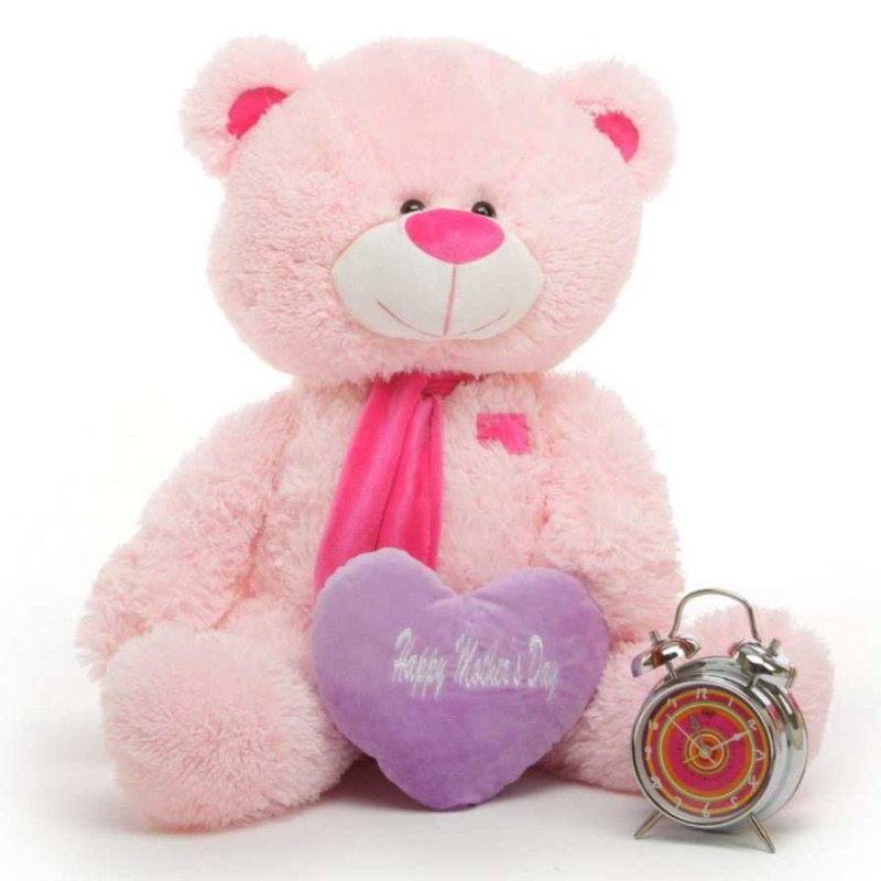 Pink 3.5 Feet Big Muffler Teddy Bear with a Purple Happy Mothers Day heart