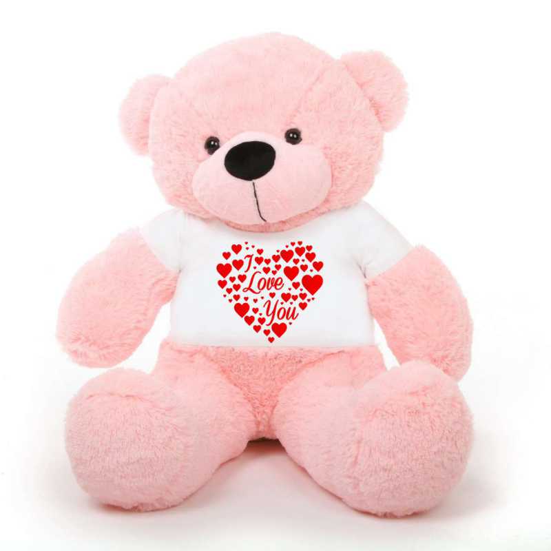 Pink 5 feet Big Teddy Bear wearing a I Love You T-shirt