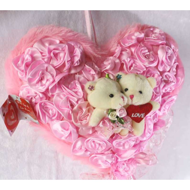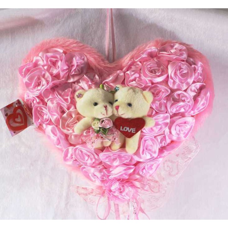 If you are looking for a special gift for someone then nothing can be a better option than this hanging heart with couple teddy bear. Soft toys are loved by the people of all age groups. This hanging heart is pink in color and is covered with beautiful pink satin roses. The heart is decorated with ribbons and a cute valentine couple teddy bear is situated in the middle. You can decorate your home with this adorable hanging basket or can gift to your near and dear ones. Specially handcrafted in INDIA.