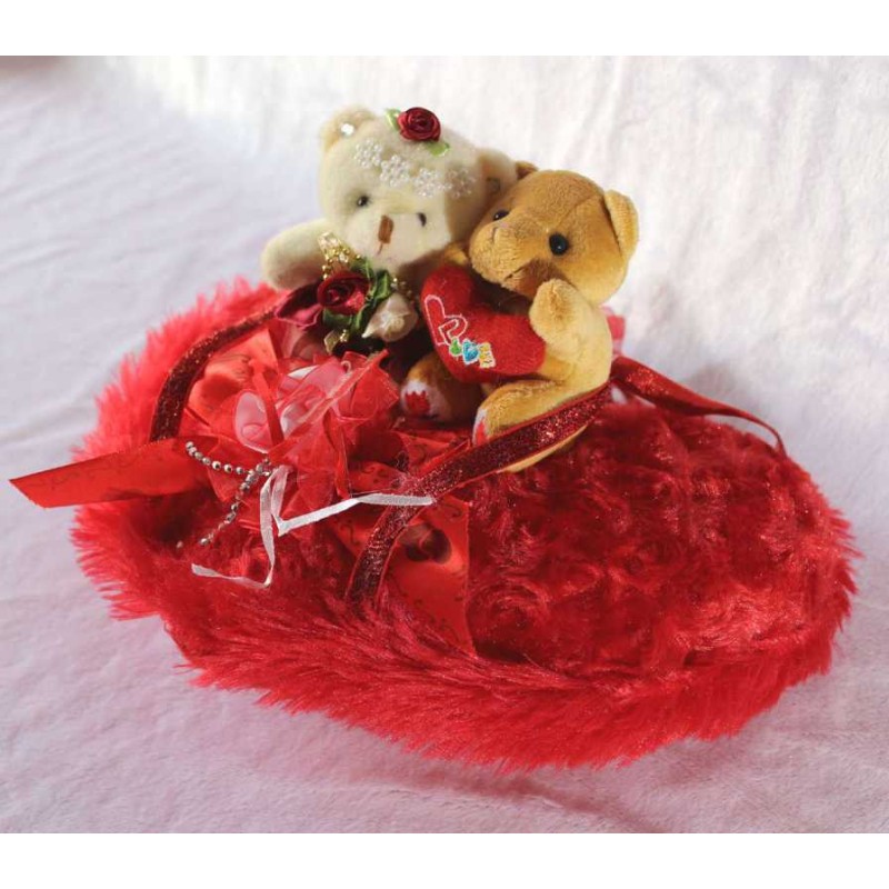 With a lovely couple showpiece, you can win your beloveds heart easily. Make him or her elated from the core, this Valentines Day with a gift that will not only make him or her smile for every day. The showpiece we have here, is made to hang beautifully and it is made in red. It is in a heart shape cushion with teddy couple placed on it. There are two teddies seated on it. Both male and female teddy signifies a couple truly in love. Present it to her and make her heart melt with love. Specially handcrafted in INDIA.