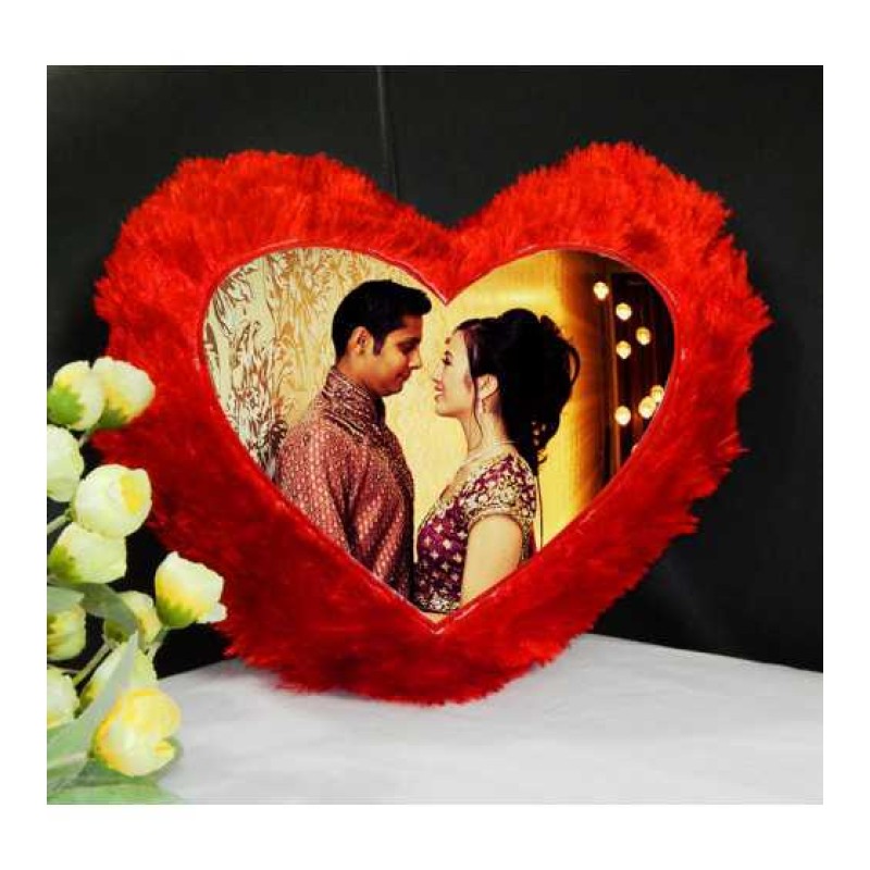 Buy Red Heart Fur Pillow With Personalized Photo Online at Lowest Price in India | GRABADEAL
