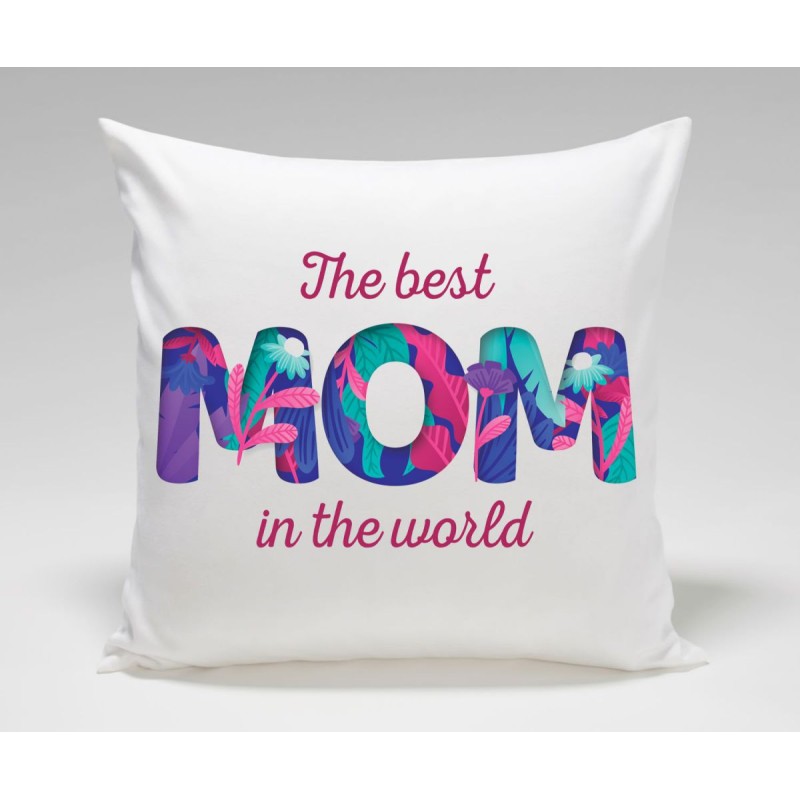 Beautiful Mothers Day cushion inscribed with The best MOM in the world.