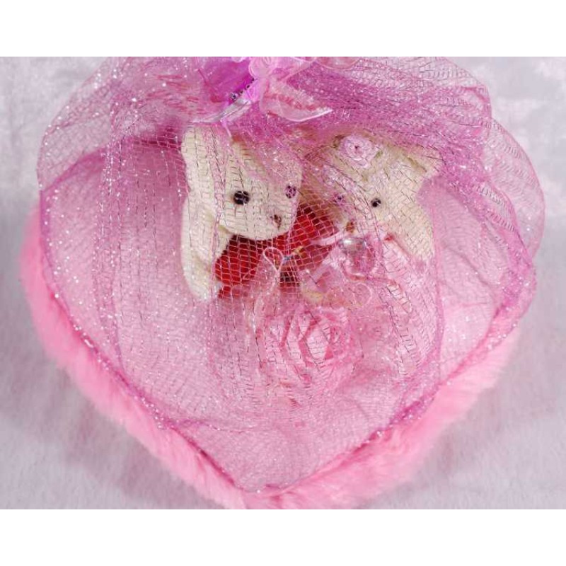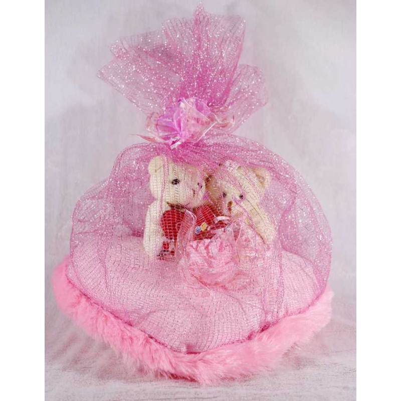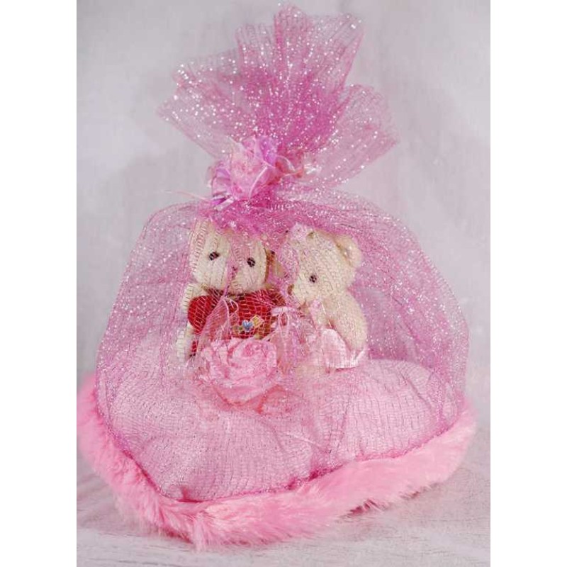 With a lovely couple showpiece, you can win your beloveds heart easily. Make him or her elated from the core, this Valentines Day with a gift that will not only make him or her smile for every day. The showpiece we have here, is made to sit beautifully and it is made in pink. It is a heart shape cushion with teddy couple placed on it and a beautiful net covering it. There are two teddies seated on it. Both male and female teddy signifies a couple truly in love. Present it to her and make her heart melt with love. Specially handcrafted in INDIA.