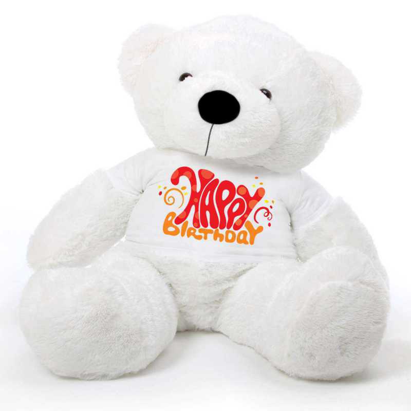 White 5 feet Big Teddy Bear wearing a Happy Birthday T-shirt